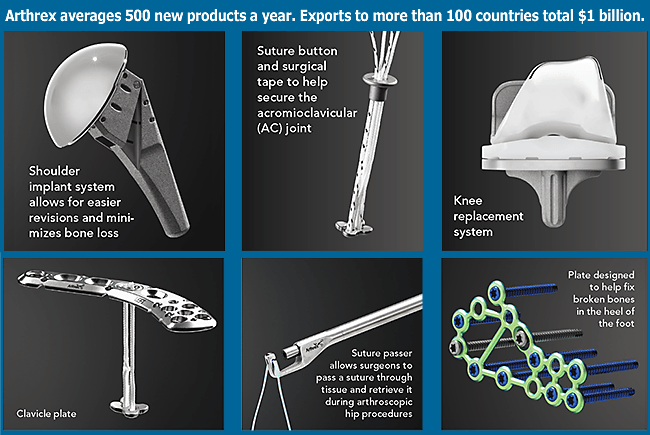 The osteoarthritis, sports medicine and minimally invasive surgery markets are great places to be as the developed world’s population gets more active and ages. Arthrex holds the largest share in the arthroscopy/soft tissue market, with a 27% slice of a pie that’s projected to grow 4.2% through 2017, according to Chris Mosby, managing editor of Orthoworld, an industry publication.