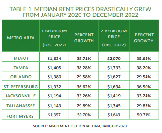 Rent prices have drastically increased in Florida from 2020 to 2022.